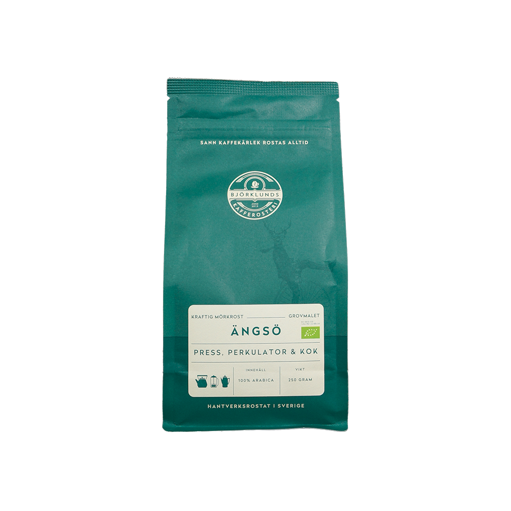 Ängsö naturreservat är ett friluftsområde i Mälaren som består av många öar, holmar och skär. Här är det populärt att vandra, paddla kajak och njuta av naturen. Vårt kaffe blev inspirerat av friluftslivet och känslan att brygga kokkaffe på klippan blickandes ut mot Mälaren.